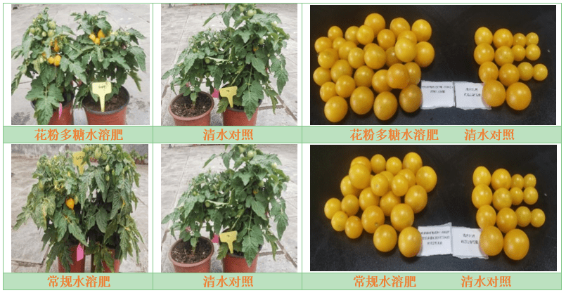 (2)在設(shè)施大棚中,采用花粉多糖制劑產(chǎn)品灌根大棚番茄,7.5kg/公頃可顯著提升番茄風(fēng)味,提高Vc含量20.3%,增加采摘率4.9%。