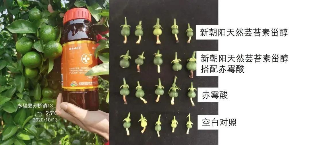 蕓苔素能夠平衡植物體內各類激素,在植物生長的各個時期都可以起到特殊的作用,尤其是天然蕓苔素,廣泛應用在柑橘的各個時期。蕓苔素可以增強光合效率,促進營養物質的積累和轉化,提高作物產量,改善作物品質;提高植物體內各種酶的活性和內源激素的調節,促進早期花芽分化,保花保果;提高作物抗逆能力,如耐寒、耐旱、耐高溫、耐澇、耐鹽堿能力;協同增效,減輕農藥藥害及化學污染藥害。